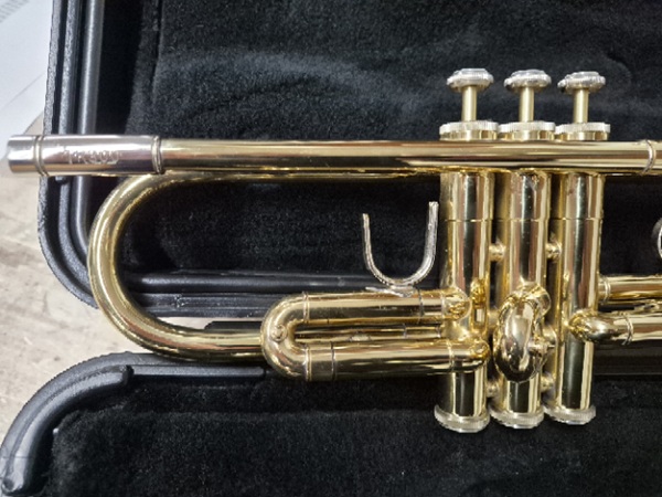 The Bach TR300 trumpet is designed specifically for students, offering a combination of quality craftsmanship and user-friendly features. It is made from high-quality brass, which contributes to its warm tonal quality and durability. The trumpet features Monel piston valves that ensure smooth action and longevity, making it suitable for daily practice and performance. This instrument has been fully serviced by our technicians and it ready to make some music! Includes the original hard case and a Bach 7c mouthpiece.