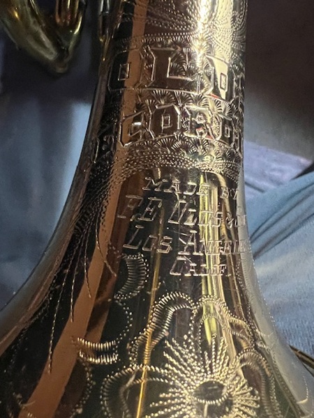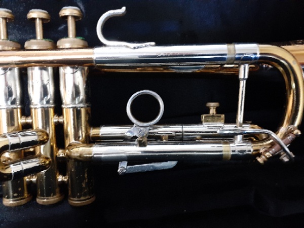 Here is an Olds Recording Trumpet from around 1951. This is a vintage trumpet sought after by collectors and players who love that vintage sound! It has a .460 bore, offset second valve, balanced valves set forward on the horn, trombone style water keys, copper alloy lead pipe and a third valve spring-loaded trigger that squeezes toward the player. The lacquer is worn, but the appearance of the instrument is very good considering the age. It was chemically cleaned by the Horn Hospital in January of 2025. According to the serial number, this trumpet was produced in Los Angeles, before the company moved to Fullerton. These don’t come around too often!